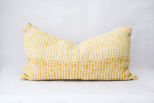 The Yellow Pitaya is a tropical fruit that grows in the Amazon region of Colombia. It is a fruit known for its healing properties but also for its interesting shape and bright color. Our pitaya lumbar pillow was inspired by the fruit’s bright sun yellow bringing an essential color of joy and softness to any space.This is one of the few items that combines a hand-spun cotton technique giving it an extra human touch with the rustic look of our organic cotton.